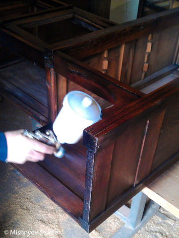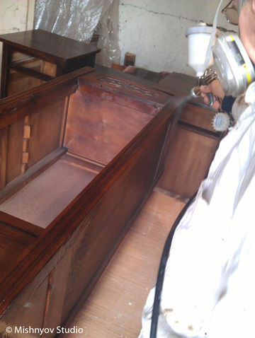 Реставрация старого буфета из массива дуба в стиле Югендстиль, начало 20-ого века