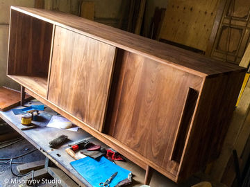 Реставрация комода из массива американского ореха в стиле Mid-century, 2010-е годы