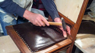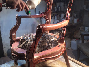 Чаще всего предмет, нуждающийся в перетяжке, уже утратил свою изначальную прочность, поэтому после выбора необходимого материала, вида наполнителя и подложки мы сперва приступаем к укреплению всей конструкции.